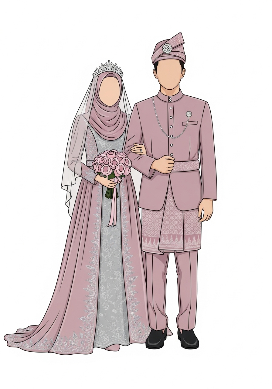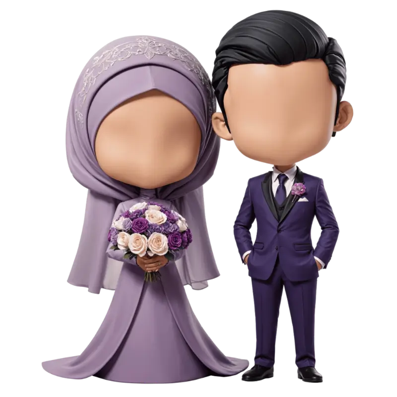 Ingin tampil unik tanpa memperlihatkan detail wajah? Kategori Faceless memberikan kesan minimalis namun tetap memukau. Desain ini fokus pada siluet dan gaya busana, memberikan sentuhan modern yang cocok untuk undangan pernikahan bertema elegan dan stylish.